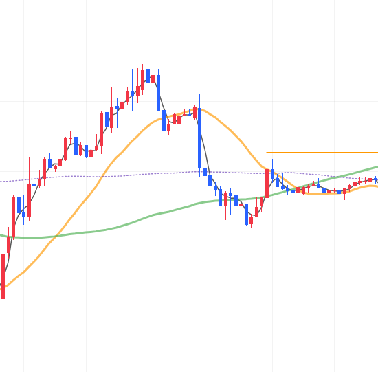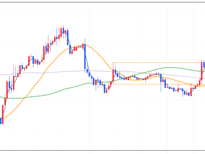 - 経済指標の発表前でオレンジ線のレンジ内で停滞中